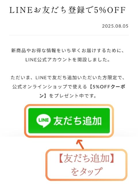 ⒈公式LINEを友だち登録 → 全品5%OFFクーポンを受け取る